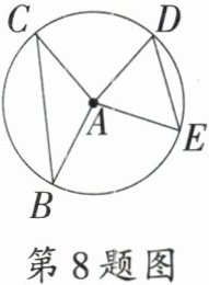 8. 如图,半径为5的$⊙A$中,弦$BC$,$ED$所对的圆心角分别是$∠BAC$,$∠EAD$.若$DE = 6$,$∠BAC + ∠EAD = 180°$,则弦$BC$的长等于