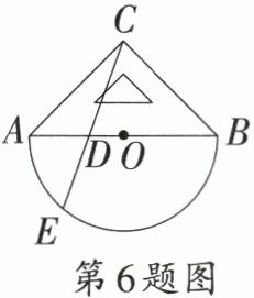 6. 以$O$为中心点的量角器与直角三角板$ABC$按如图方式摆放,量角器的0刻度线与斜边$AB$重合,点$D$为斜边$AB$上一点,作射线$CD$交弧$AB$于点$E$.如果点$E$所对应的量角器上的读数为$50°$,那么$∠ACE$的大小为
