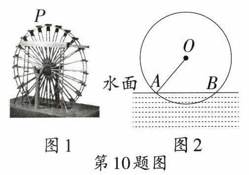 10. 中华优秀传统文化情境 筒车 筒车是我国古代人民发明的一种水利灌溉工具.如图1,点$P$表示筒车的一个盛水桶.如图