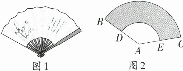 4. 日常生活情境 扇子“打开半个月亮,收起兜里可装.来时荷花初放,去时菊花正黄.”这则谜语说的就是扇子(图1).如图2,一把竹扇完全打开后,外侧两根竹条$AB,AC$的夹角为$135^{\circ}$,$AB$的长为$30 cm$,扇面$BD$的长为$15 cm$,则扇面的面积为 (