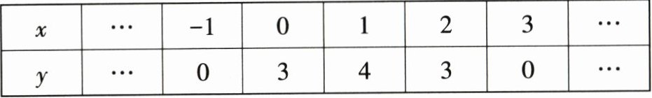 (1)根据表中数据可知,二次函数图象的顶点坐标为(1,4)。(1分)