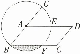 12.〔杭州市〕(8分)如图所示,以$□ ABCD$的顶点$A$为圆心,$AB$长为半径作圆,分别交$AD,BC$于点$E,F$,延长$BA$交$\odot A$于点$G$.