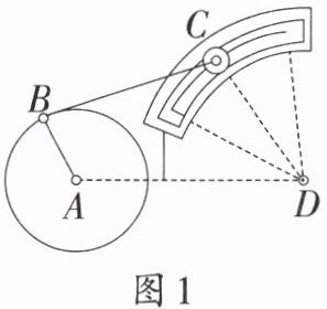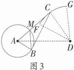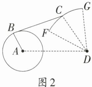 11. 曲柄连杆运动的示意图如图1所示,滑块C在弧形漏槽内运动,通过连杆带动点B绕点A做圆周运动.某数学兴趣小组利用示意图,构建了数学模型.如图2,点C在$ \overgroup{FG} $上运动,利用连杆BC,使得点B在$ \odot A $上运动.如图3,点C运动到这一时刻时,连接AC交$ \odot A $于点M,连接BM,$ \angle ACB + 2\angle MBC = 90° $.请判断此时BC与$ \odot A $的位置关系,并说明理由.