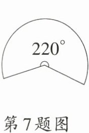 7. 〔开封市〕如图,草坪上的自动喷水装置能旋转$ 220° $,它的喷灌区域是一个扇形,这个扇形的半径是20 m,则它能喷灌的草坪的面积为$ $
