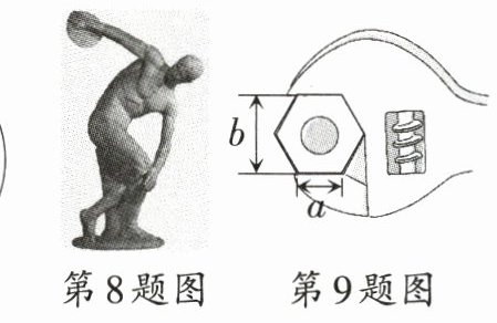 9. 课后题改编 如图,在拧开一个边长为$ a $的正六角形螺帽时,扳手张开的开口$ b = 10\sqrt{3}\ mm $,则$ a = $