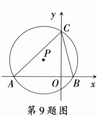 9. 如图,⊙P与x轴交于点A(-5,0),B(1,0),与y轴的正半轴交于点C. 若$\angle ACB = 60^{\circ}$,则点P的坐标为 (