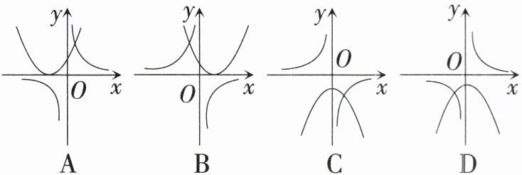6.〔石家庄市〕函数$y = kx^2 - 2$与$y = \frac{k}{x}(k \neq 0)$在同一平面直角坐标系中的图象大致是 (