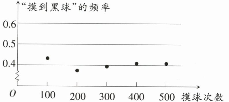 [解析]观察统计图可知,随着试验次数的增加,频率稳定在0.4附近,故摸到黑球的频率会接近0.4.
