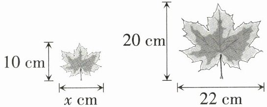 10. 如图是两片形状相同的枫叶图案,则$x$的值为