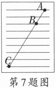 7. 〔西安市〕如图,练习本中的横格线都互相平行,且相邻两条横格线间的距离都相等,同一条直线上的三个点$A,B,C$都在横格线上.若线段$AB = 4$,则线段$BC$长为 (