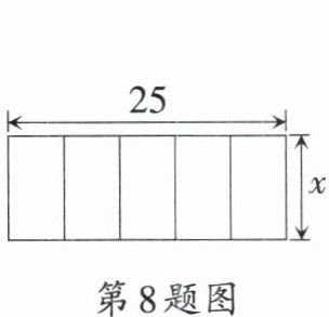 8. 矩形相邻的两条边长分别为25和$x(x<25)$,把它按如图所示的方式分割成五个全等的小矩形,每一个小矩形均与原矩形相似,则$x$的值为 (