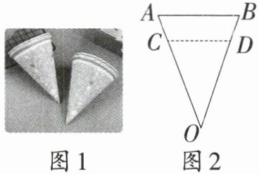 4.〔太原市〕图1是机场常用的一种圆锥形直饮水杯,这种设计是为了节省存储空间. 小明画出这种纸杯的截面图如图2所示,其中点O为杯底顶点,AB,CD分别表示杯口、水面,OA = OB,CD//AB. 若杯中水的高度是杯子高度的80%,则水的体积与杯子容积的比最接近于 (