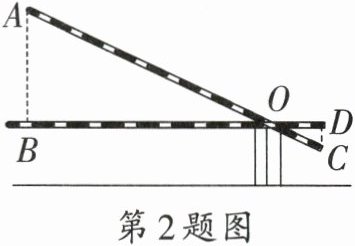 2.〔重庆市改编〕某小区门口的栏杆如图所示,栏杆从AC位置绕点O旋转到水平位置BD. 已知AB⊥BD,CD⊥BD,垂足分别为点B,D,AO = 4 m,AB = 1.6 m,CO = 1 m,则栏杆C端上升的垂直距离CD为(