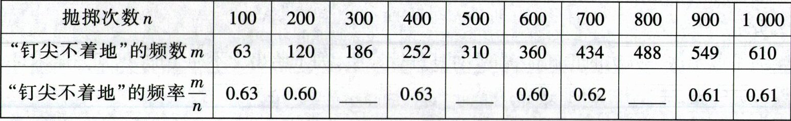 (3) 根据“抛掷图钉试验”的结果,估计“钉尖着地”的概率为