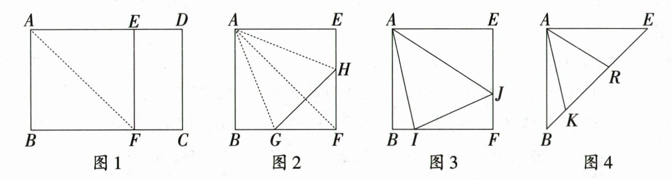 连接正方形对角线$BE$,若图3中的$\angle IAJ$的边$AI,AJ$分别交对角线$BE$于点$K,R$,将正方形纸片沿对角线$BE$剪开,如图4.若$BK=2,ER=4$,请直接写出$KR$的长.