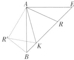 [解析]如图,将$\triangle AER$绕点$A$顺时针旋转$90^{\circ}$得到$\triangle ABR'$,连接$KR'$。