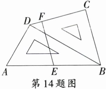 14. 一副三角板按如图方式摆放,其中$\angle ADB = \angle BCD = 90^{\circ}$,$\angle A = 60^{\circ}$,$\angle CBD = 45^{\circ}$,$E$为$AB$的中点,过点$E$作$EF \perp CD$于点$F$.若$AD = 4\ cm$,则$EF$的长为