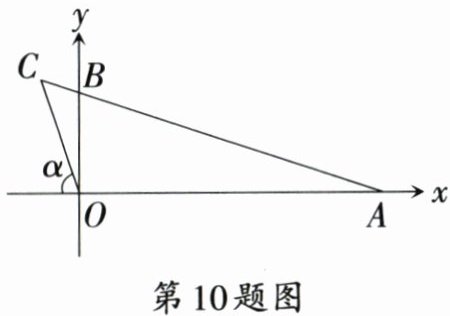 10. 如图,在平面直角坐标系$xOy$中,$AB = 2\sqrt{10}$,延长$AB$至点$C$,连接$OC$.若满足$OC^2 = BC · AC$,$\tan\alpha = 3$,则点$C$的坐标为 (
