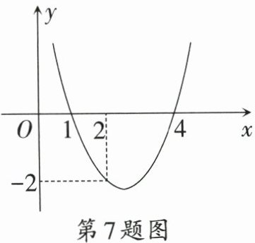 7. 〔宁波市〕如图,抛物线经过$( 1,0 )$,$( 2,-2 )$和$( 4,0 )$三点,则抛物线与$y$轴的交点坐标是(