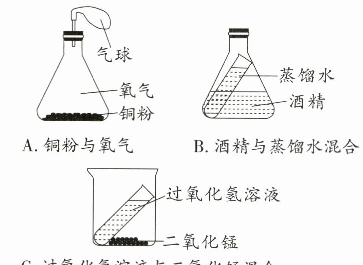 10. 某化学兴趣小组的同学设计了A、B、C三个实验装置(电子天平省略)来验证质量守恒定律,如图所示。