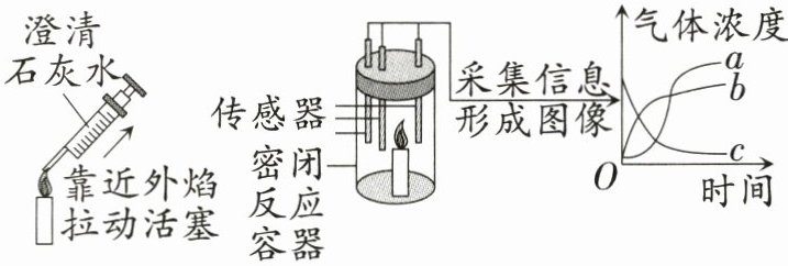 9. 设题新角度 创新实验 某化学兴趣小组通过微型实验探究蜡烛燃烧的产物,用数字化仪器监测密闭容器内蜡烛燃烧时氧气、二氧化碳和水蒸气含量的变化,形成三条曲线,如图所示。下列说法不正确的是 (