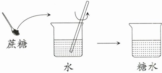 8. 课后题改编 如图所示,将蔗糖加入水中,用玻璃棒搅拌,蔗糖“消失”在水中形成糖水。