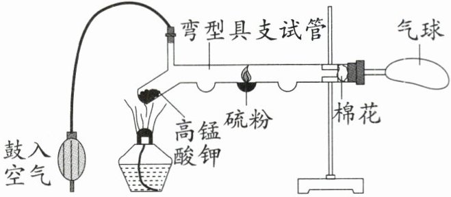 6. 设题新角度 创新实验 利用下图装置进行“硫燃烧”的实验:向弯型具支试管中鼓入空气,同时用酒精灯给硫粉加热至燃烧;然后停止鼓入空气,再用酒精灯给高锰酸钾加热。下列关于该实验的说法不正确的是