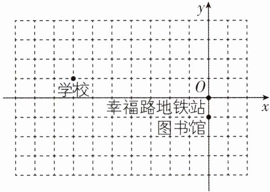 2 [2025 贵州贵阳质检] 如图,以幸福路地铁站为原点,建立平面直角坐标系,若图书馆的坐标为$(0,-1)$,则学校的坐标为 ( )