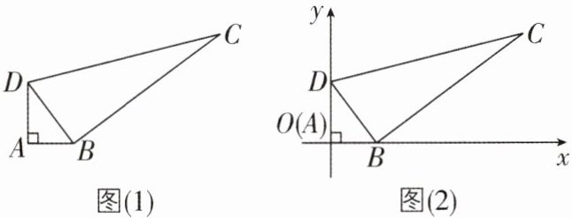 (3)如图(2),以A为坐标原点,分别以AB,AD所在直线为x轴、y轴建立直角坐标系,点P在y轴上,若$S_{△PBD}= \frac{1}{4}S_{四边形ABCD}$,求点P的坐标。