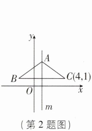 2 [2024 广西柳州城中区质检]如图,在平面直角坐标系中,△ABC 关于直线 m(直线 m 上各点的横坐标都为 1)对称,点 C 的坐标为(4,1),则点 B 的坐标为 ( )