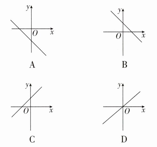 B [解析]在平面直角坐标系中描出点A(2,0),B(0,−3),画出此一次函数图象,如图所示,所以该函数图象不经过第二象限.故选B.