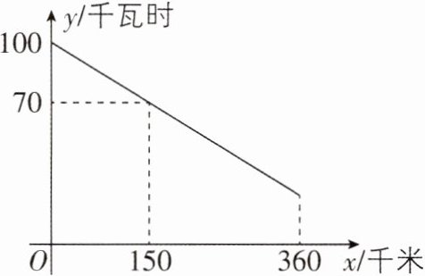 3 [2025 四川成都期末,中]我国新能源汽车快速健康发展,续航里程不断提升.王师傅驾驶一辆纯电动汽车从一高速公路入口 A 驶入时,该车的剩余电量是 100 千瓦时,行驶了 360 千米后,从另一高速公路出口 B 驶出.已知该车在高速公路上行驶的过程中,剩余电量 y(千瓦时)与行驶路程 x(千米)之间的关系如图所示.