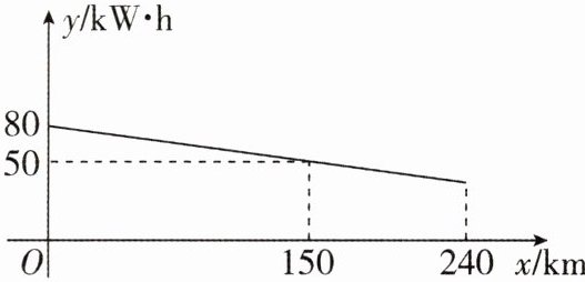 7 [2024陕西中考]我国新能源汽车快速健康发展,续航里程不断提升,王师傅驾驶一辆纯电动汽车从$A市前往B$市. 他驾车从$A$市一高速公路入口驶入时,该车的剩余电量是$80\text{kW}\cdot\text{h}$,行驶了$240\text{km}$后,从$B$市一高速公路出口驶出. 已知该车在高速公路上行驶的过程中,剩余电量$y(\text{kW}\cdot\text{h})与行驶路程x(\text{km})$之间的关系如图所示.