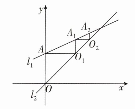 9 《庄子·天下篇》记载“一尺之棰,日取其半,万世不竭”. 如图,直线$l_{1}:y = \frac{1}{2}x + 1与y轴交于点A$,过点$A作x轴的平行线交直线l_{2}:y = x于点O_{1}$,过点$O_{1}作y轴的平行线交直线l_{1}于点A_{1}$,以此类推,令$OA = a_{1}$,$O_{1}A_{1} = a_{2}$,…$$,$O_{n - 1}A_{n - 1} = a_{n}$,若$a_{1} + a_{2} + … + a_{n} \leq S$对任意大于1的整数$n$恒成立,则$S$的最小值为______.