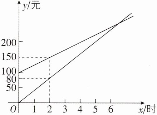10 [2025山东烟台期末]某羽毛球馆有两种收费方式:$A$种是办理会员卡后每小时按优惠价付费,但需按月缴纳一定的会员费;$B$种是不办会员卡直接按打球时间付费,两种收费方式每月的收费情况如图所示,根据图中提供的信息解答下列问题.