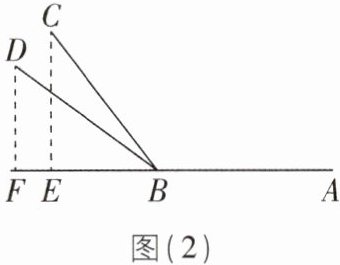 8 [2025四川成都期末]如图(1),一台笔记本电脑平放在水平桌面上,其示意图如图(2),屏幕宽BC为25 cm,当电脑张角为∠ABC时,顶部边缘C处到桌面的距离CE为20 cm,调整电脑的张角,当张角为∠ABD(点C与点D为笔记本顶部边缘同一点)时,顶部边缘D处到桌面的距离DF为15 cm,则E处与F处之间的距离EF长为______cm.