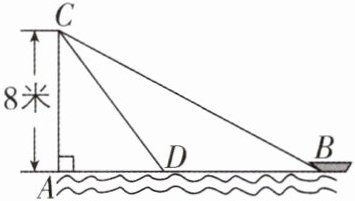 9 [2024广东佛山质检]如图,在离水面高度为8米的岸上,有人用绳子拉船靠岸,开始时绳子BC的长为17米,此人以每秒1米的速度收绳,7秒后船移动到点D的位置,问船向岸边移动了多少米?(假设收绳过程中绳子是直的)