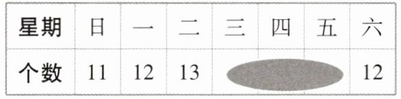 其中有三天的个数被墨汁覆盖了,但小强已经计算出这组数据唯一的众数是 13,平均数是 12,那么这组数据的方差是____.