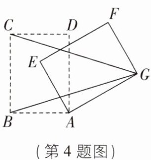 4 [中]如图,已知矩形$ABCD$,$AB = 6$,$AD = 8$,将矩形$ABCD绕点A顺时针旋转θ(0^{\circ} < θ < 360^{\circ})得到矩形AEFG$,连接$CG$,$BG$。当$θ =$______时,$GC = GB$。