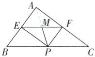 ∴PM = $\frac{1}{2}$AP.当AP⊥BC时,AP最小,此时PM也最小,AP = $\frac{AB×AC}{BC}$ = 4.8,