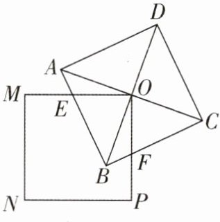 4[2025广东珠海期中,中]如图,正方形OPNM和正方形ABCD全等,边长均为3,AC与BD交于点O,正方形OPNM绕点O旋转,OM交AB于点E,OP交BC于F.