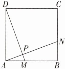 在△ABN和△DAM中,$\left\{\begin{array}{l} AB=AD\\ ∠ABN=∠DAM\\ BN=AM\end{array}\right.$,