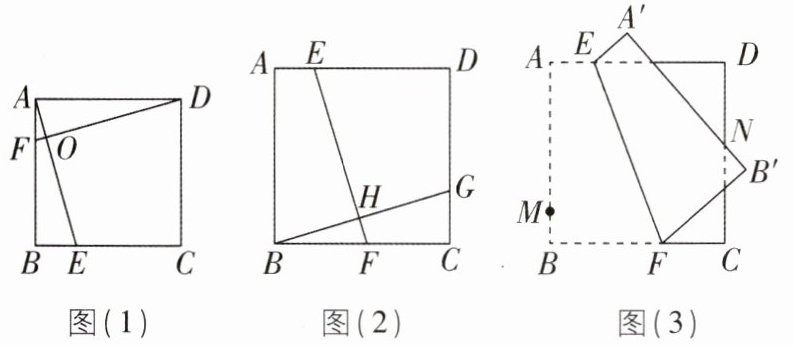 3[2025浙江宁波期末,中](1)如图(1),在正方形ABCD中,AE,DF相交于点O,且AE⊥DF,则AE和DF的数量关系为____.