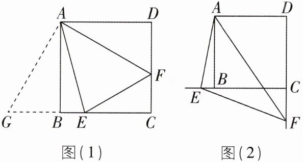 ∴∠EAG = ∠GAB + ∠BAE = ∠FAD + ∠BAE = 45° = ∠EAF。