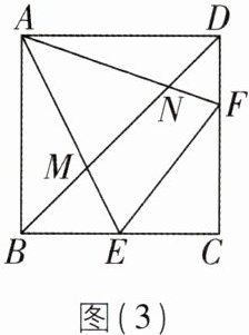 (3)如图(3),已知正方形ABCD的边长为$3\sqrt {2}$,E,F分别在BC,CD上,∠EAF= 45°,连接BD分别交AE,AF于点M,N,若点M恰好为线段BD的三等分点,且BM<DM,求线段MN的长.