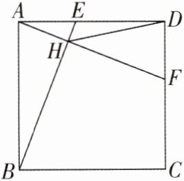 3 [2024江苏扬州广陵区质检,较难]如图,E,F分别是正方形ABCD的边AD,DC上两个动点,满足$AE= DF$,连接AF,BE交于点H,连接DH,若正方形的边长为4,则线段DH长度的最小值为____.