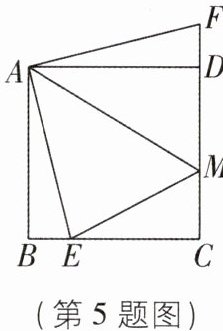5 [2024 重庆中考 B 卷]如图,在边长为 4 的正方形$ABCD$中,点$E是BC$上一点,点$F是CD$延长线上一点,连接$AE$,$AF$,$AM平分∠EAF交CD于点M$。若$BE = DF = 1$,则$DM$的长度为( )