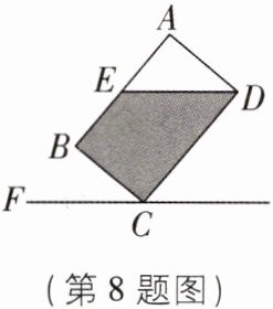 8 [2025 山西太原质检]如图,矩形$ABCD$为一个正在倒水的水杯截面图,若杯内水面刚好经过点$D(DE// CF)$,且$∠AED = 50^{\circ}$,则水杯底面$BC与水平面夹角∠BCF$的大小为____。
