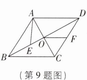 9 如图,菱形$ABCD的对角线AC$,$BD相交于点O$,点$E在OB$上,连接$AE$,点$F为CD$的中点,连接$OF$。若$AE = BE$,$OE = 3$,$OA = 4$,则线段$OF$的长为____。