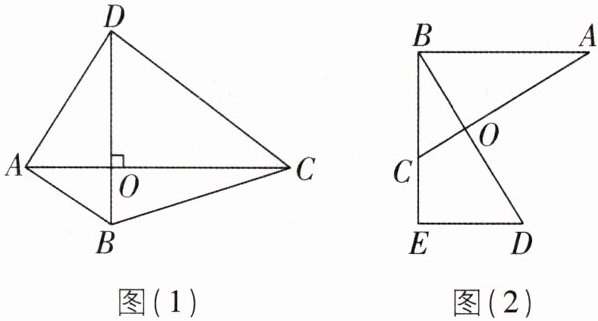 4 [2025 福建厦门校级期中改编,中]在学习了“菱形的性质与判定”后,小明根据所学的内容,试着定义了一个新的特殊四边形,规定:对角线互相垂直的四边形称为“垂美四边形”,如图(1)所示,AC⊥BD,则四边形 ABCD 为“垂美四边形”.